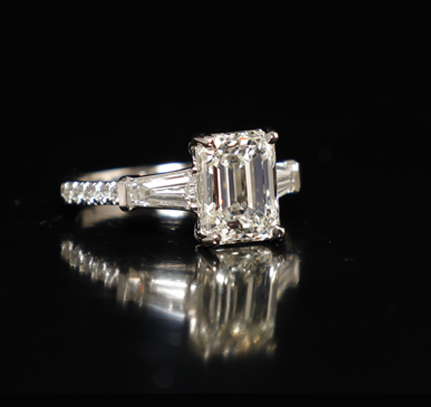 Emerald Cut Diamond Ring with Baguettes