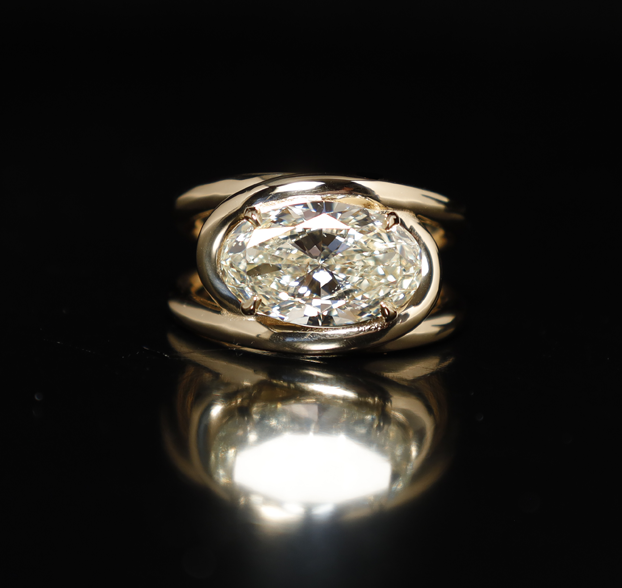 Bezel Set Oval Diamond Solitaire in an East/West Setting